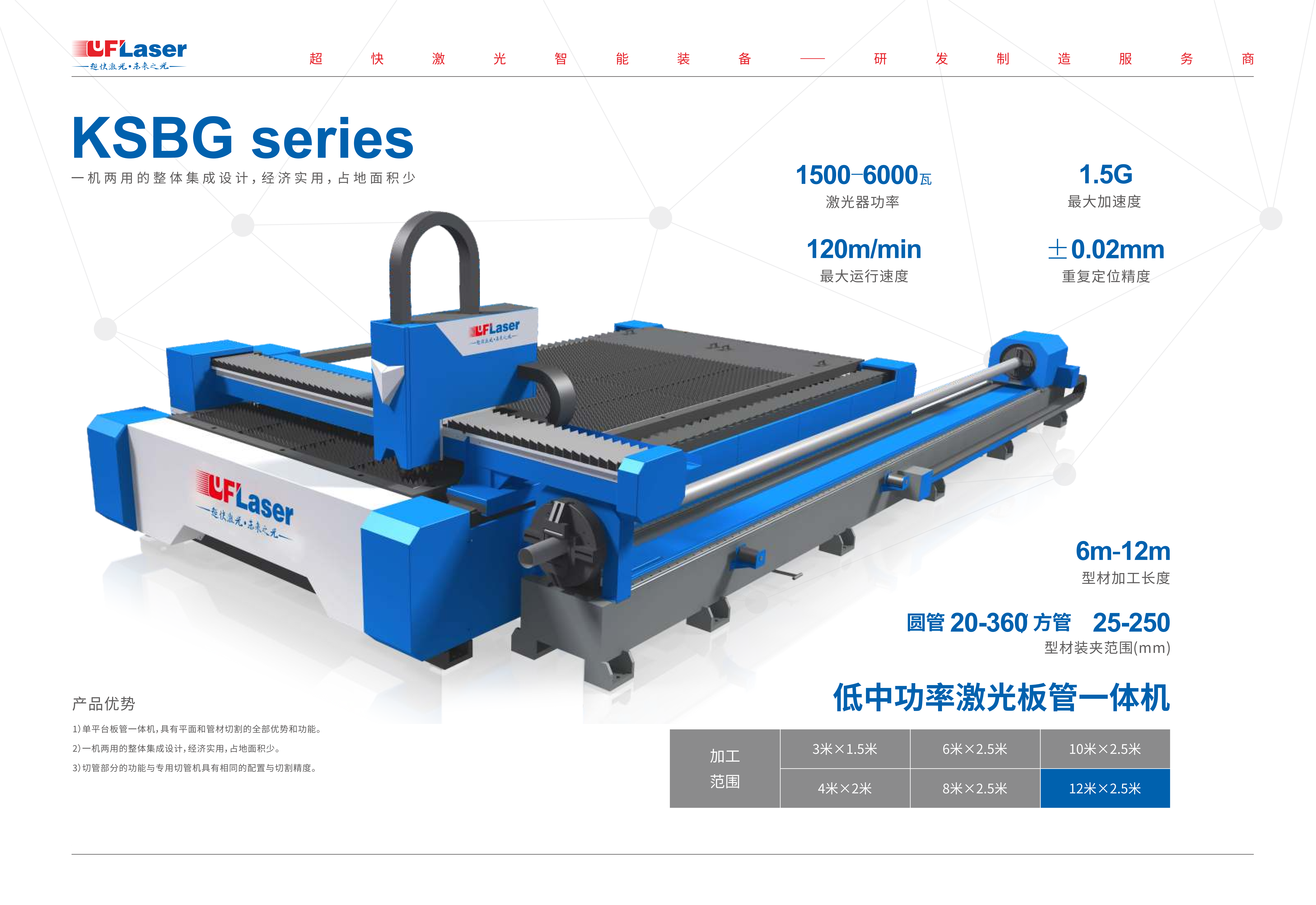 1. 一機(jī)兩用的整體集成設(shè)計(jì),經(jīng)濟(jì)實(shí)用,占地面積少,既可以加工板材又可以加工管材,使用便捷。2.具有獨(dú)特平面切割的全部?jī)?yōu)勢(shì)和功能。